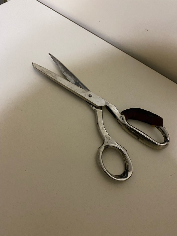 Keskin uçlu ve ergonomik saplı gri terzi makası,