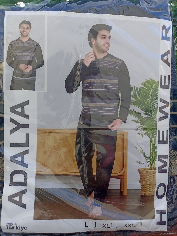 Gri tie-dye desenli, yüksek yakalı ve uzun kollu erkek pijama takımı. Normal boy ve regular fit kesim. Türkiye'de üretilmiştir.