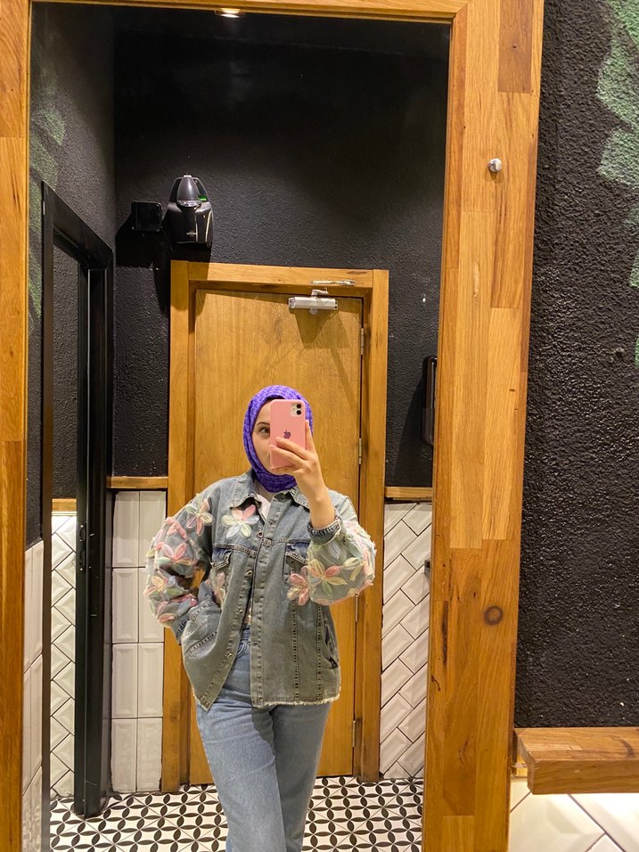 Uzun kollu, , bol kesim kadın kot ceket. Gri pastel tonlarda tie-dye deseniyle sokak stilini günlük şıklıkla buluşturuyor. Özel dikim ceket