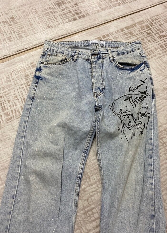 Gri Tie-Dye Desenli Salaş Erkek Jean