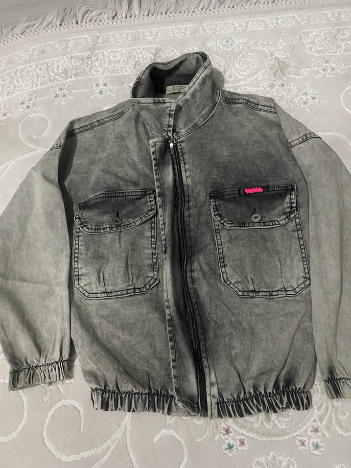 Gri Tie-Dye Düğmeli Denim Ceket