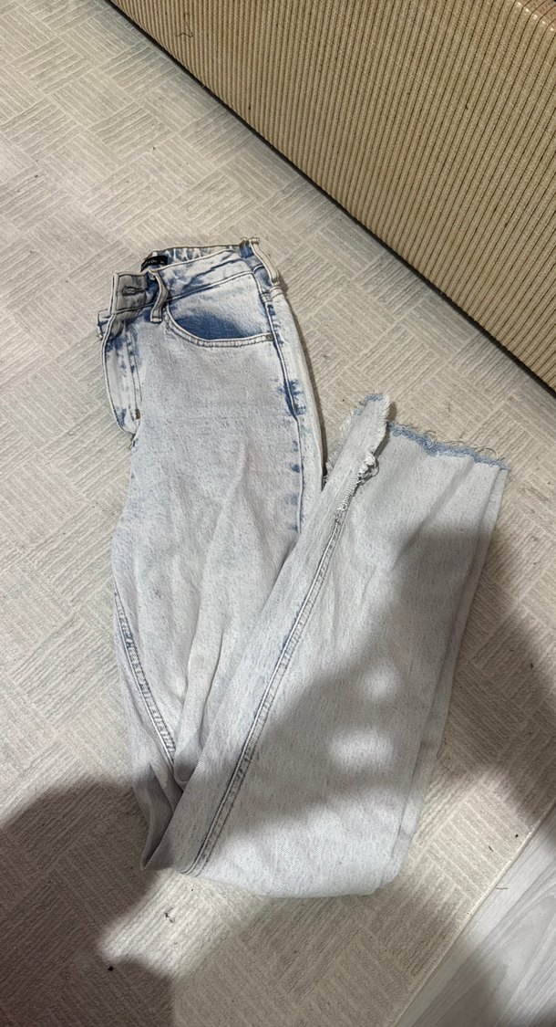 Gri tie-dye desenli, midi boy ve bol kesim denim pantolon. Günlük kullanım ve sokak stili için rahat ve zahmetsiz şıklık sunar.