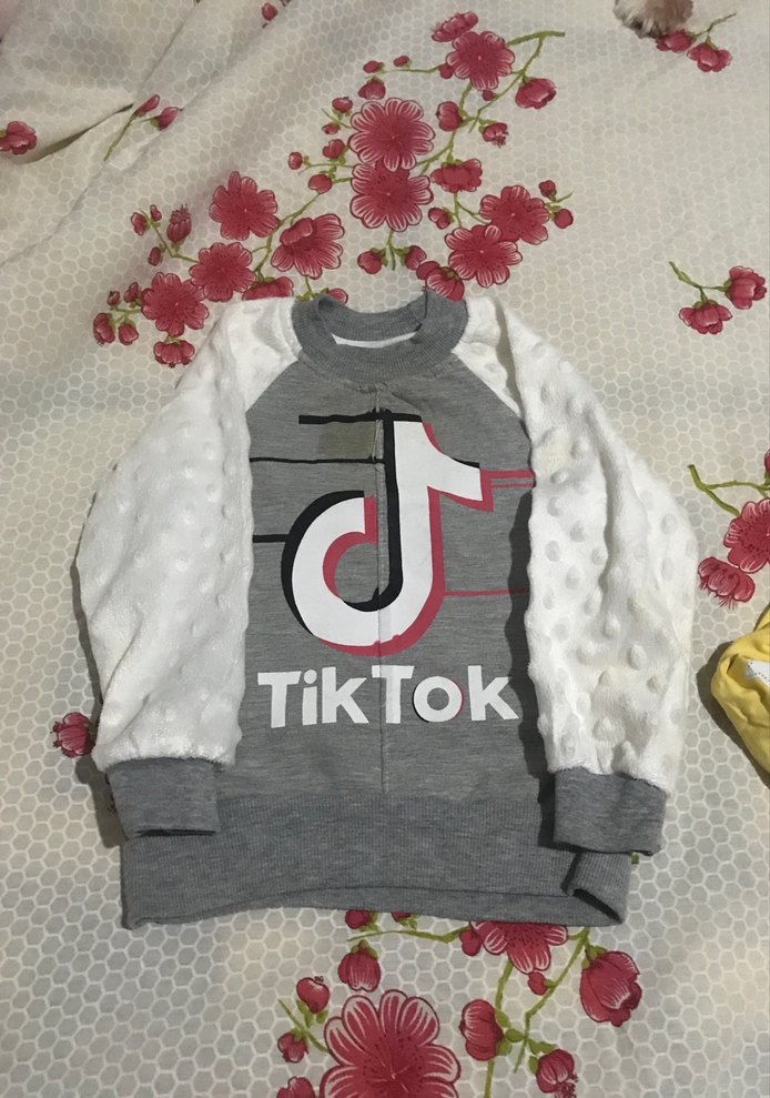 Erkek çocuk sweatshirtü, uzun kollu ve örme dokulu kollarla tasarlanmıştır. Geniş kesim, bisiklet yaka ve önünde TikTok baskısı bulunur. Sokak tarzına uygundur.