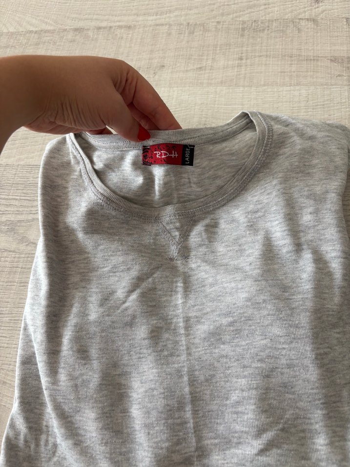 Gri uzun kollu tişört. Pamuklu kumaştan, normal boyda ve dar kesim. Günlük kullanım için uygundur.