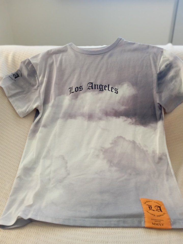 Gri renkli, kısa kollu tişört, rahat kesim ve yuvarlak yakalıdır. İpeksi dokusuyla 'Los Angeles' baskısına ve turuncu 'LA' etiketine sahiptir. Trendy casual stil için uygundur.gögüs altından 45 cm boy 62 cm yenidir.