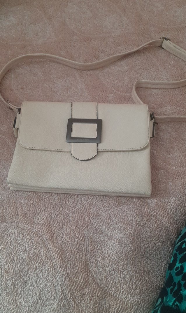 Gri Tokalı Beyaz Deri Kadın Çanta