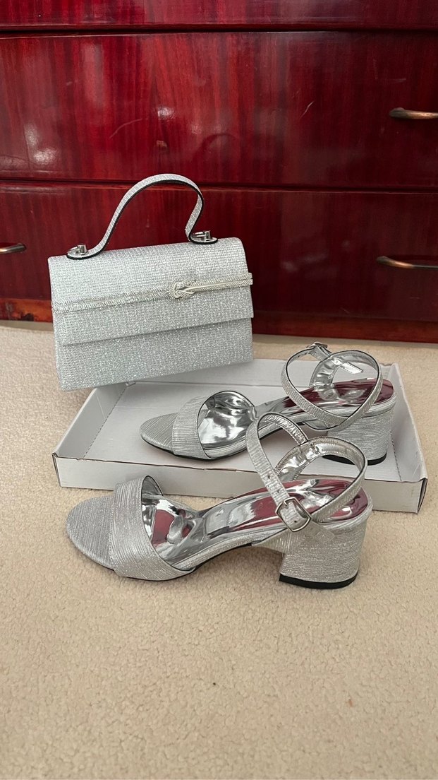 Gri Tokalı Blok Topuk Abiye Ayakkabı Ve Çanta