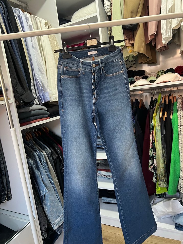 Good American markasıdır. Gri tokalı, bol kesim, midi boy kadın jean. Mavi denim kumaştan, desensiz tasarımıyla günlük kullanıma uygundur.