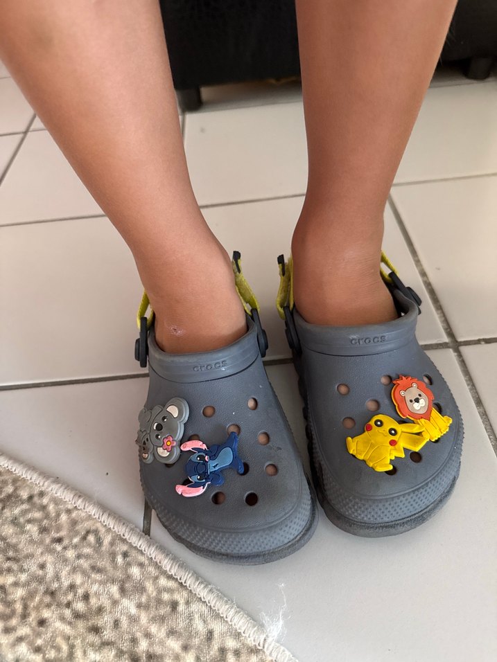 Gri renkte, tokalı ve baskılı figür detaylı kauçuk erkek çocuk terlikleri, rahat ve trend bir tarza sahiptir.