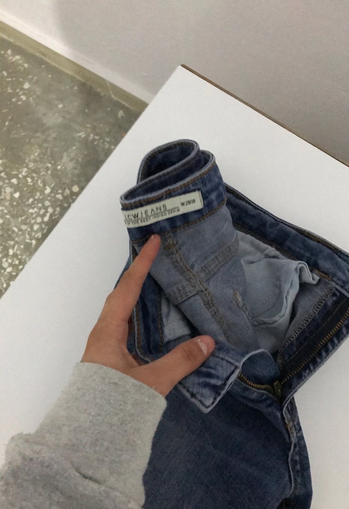 Gri tokalı, normal midi boyda, fitted kesim kadın denim jean. Mavi renkte, desensiz ve gündelik kullanıma uygun normcore tarza sahip.