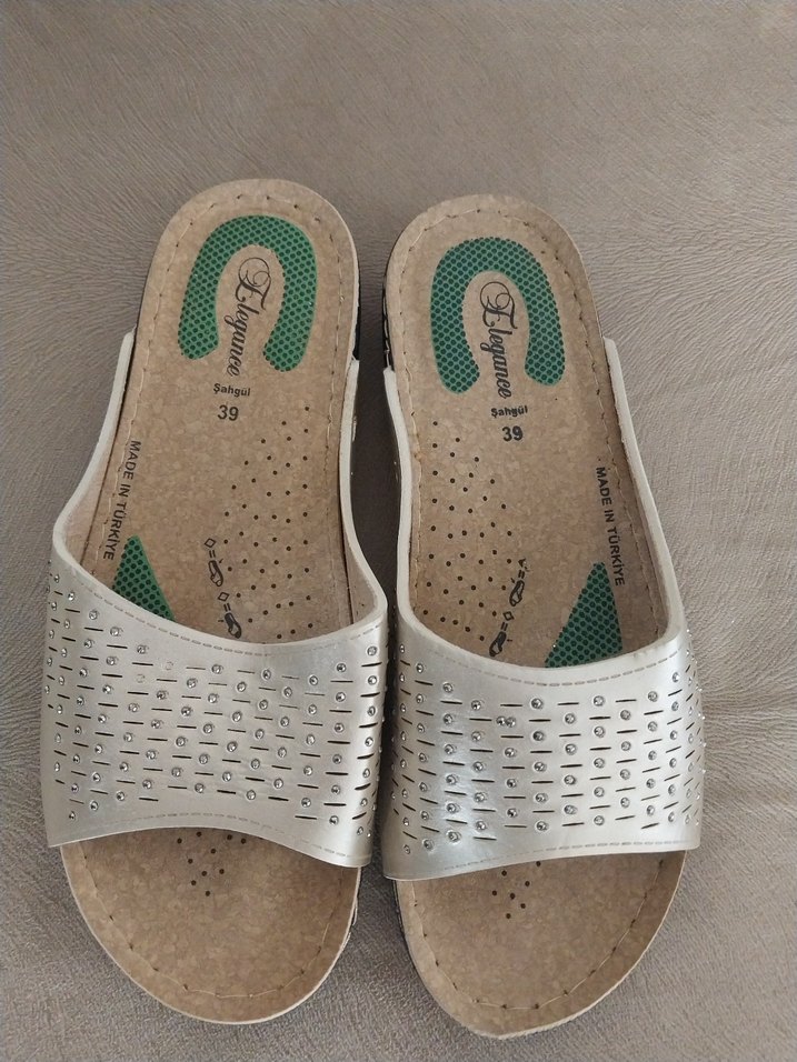 Gri Tokalı Kadın Dolgu Topuk Terlik sifir urun