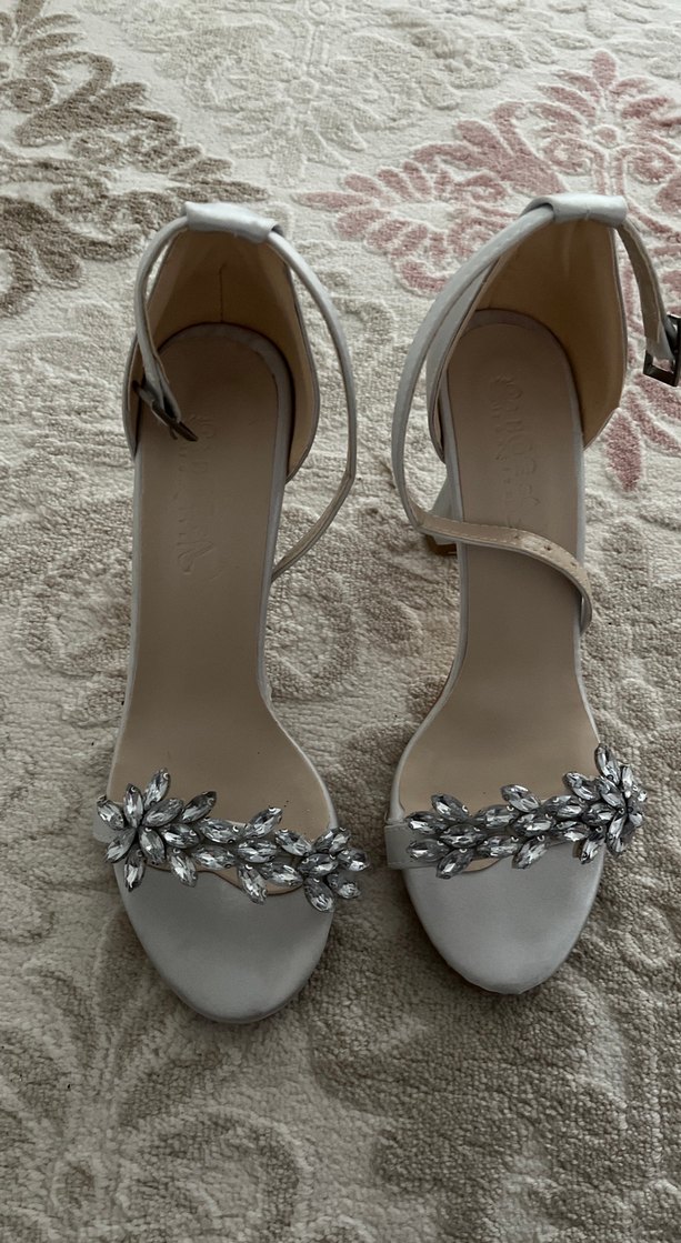 Gri süet malzemeden tokalı bilek kayışı ve kristal süslemelere sahip stiletto topuklu ayakkabı, düğün ve özel davetler için uygundur. Modern ve klasik bir tasarım sunar.