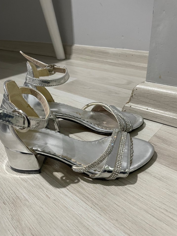 Gri Tokalı Topuklu çocuk Ayakkabı