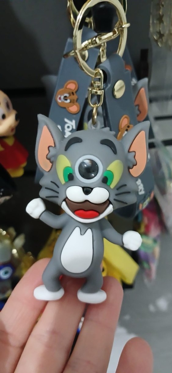 Işıklı anahtarlık çizgi film kedisi tasarımlı ve püsküllü bu anahtarlık