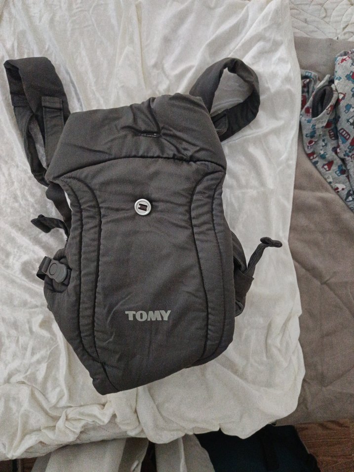 Gri TOMY bebek kanguru, konforlu ve güvenli taşıma sağlar. Yumuşak dolgulu kayışları ve ergonomik tasarımı ile ebeveynlere kolaylık sunar. sorarak alım yapınız lütfen iadesi yok