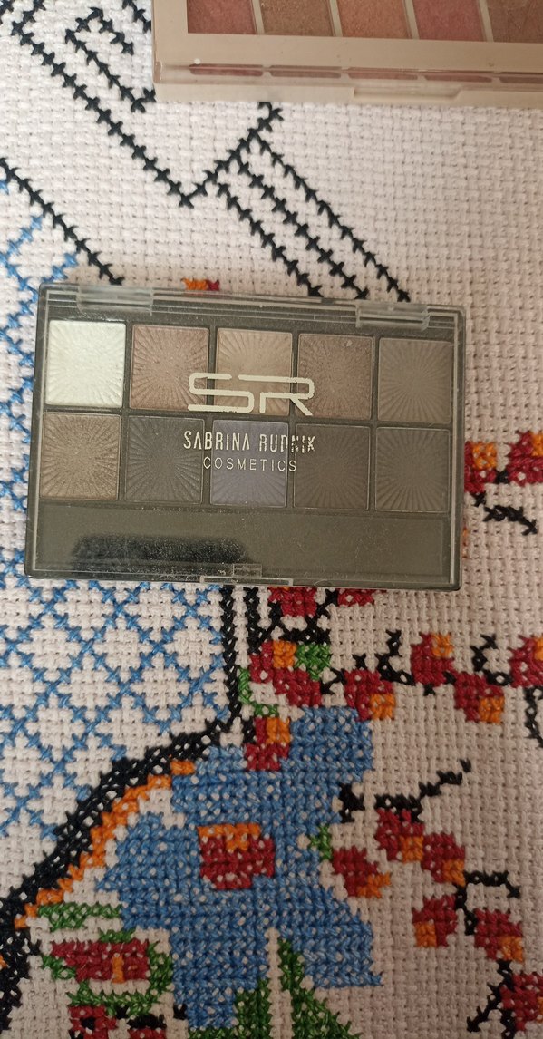 Sabrina Rursik Cosmetics far paleti, mat ve ışıltılı gri tonlarda çeşitli renkler sunar.