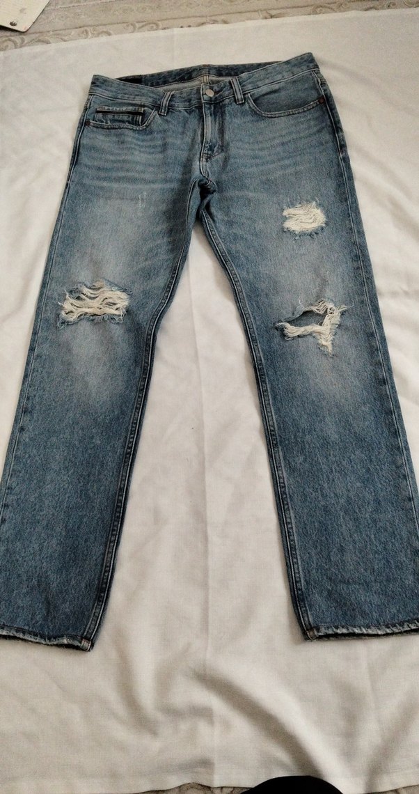 Gri tonlu mavi denim kumaştan, bol kesim midi kot pantolon. Yıpranmış detaylara sahip, günlük sokak stiline uygun rahat bir model. Kemer tokalı ve düz kesim.