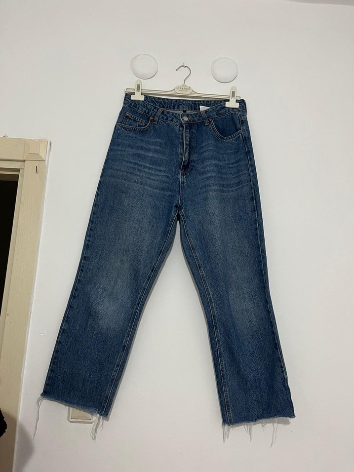 Gri tonlu mavi denimden yapılmış, salaş kesim midi jean. Rahat ve şık sokak stili sunar, günlük kullanıma uygundur.
