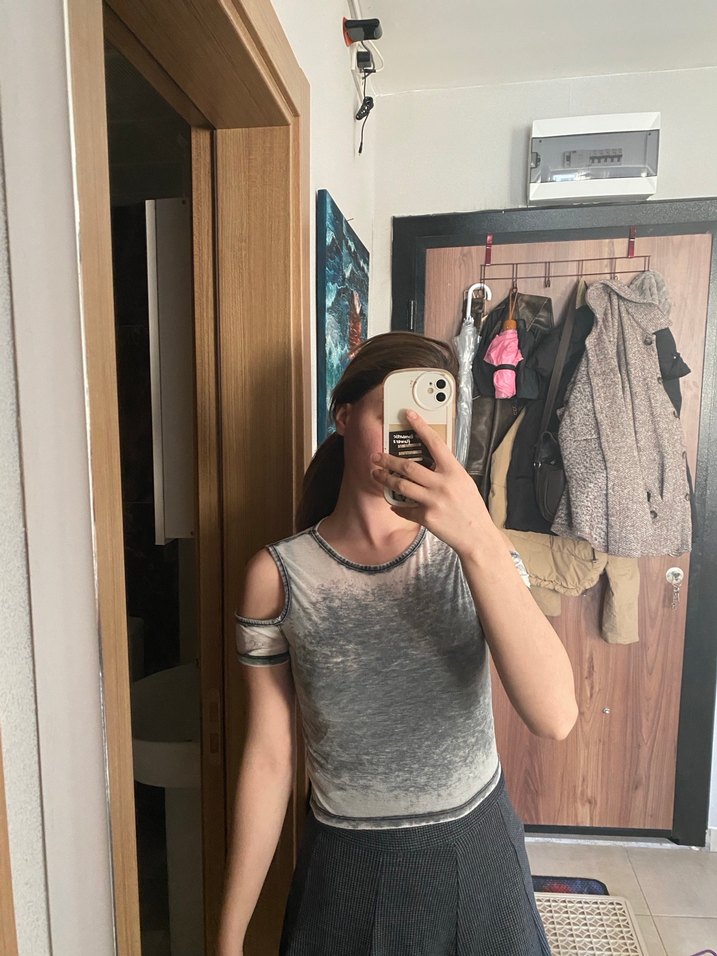 Gri Transparan Straplez Kadın Tişört