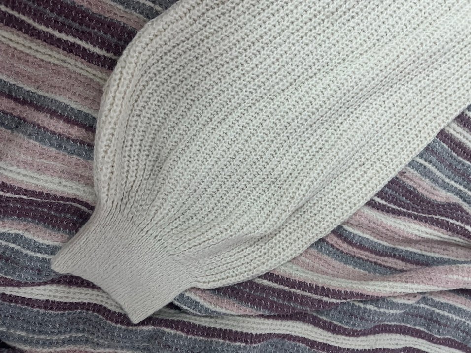Gri renkli, keten dokulu, balıkçı yaka ve ince askılı, vücuda oturan kadın kazak. Orta boy uzunlukta, günlük kullanım için uygundur.