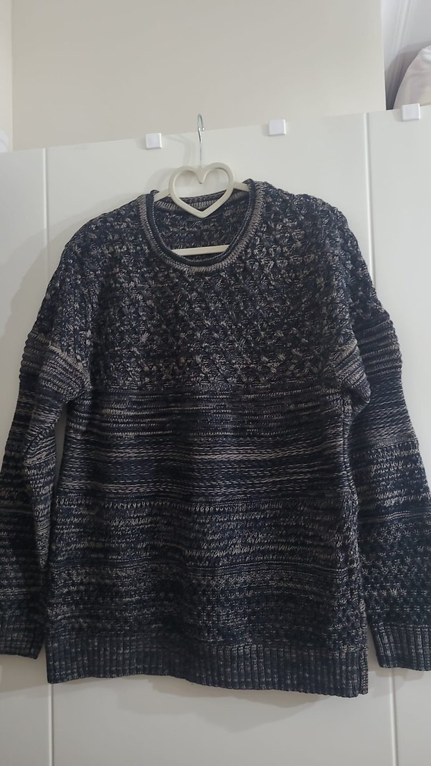 Gri renkli, triko dokulu, yuvarlak yaka ve uzun kollu kadın kazak. Rahat ve bol kesimiyle günlük kullanıma uygundur.
