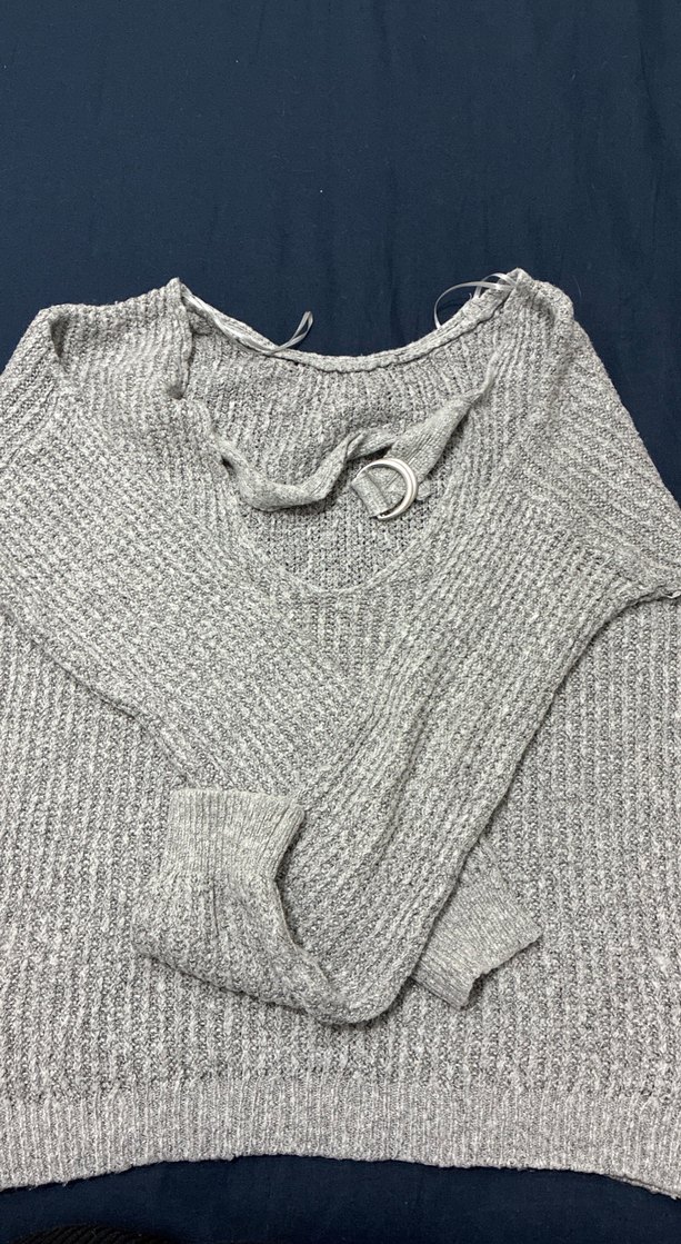 Gri Triko Kadın Bluz, Salaş Kesim, Uzun Kollu