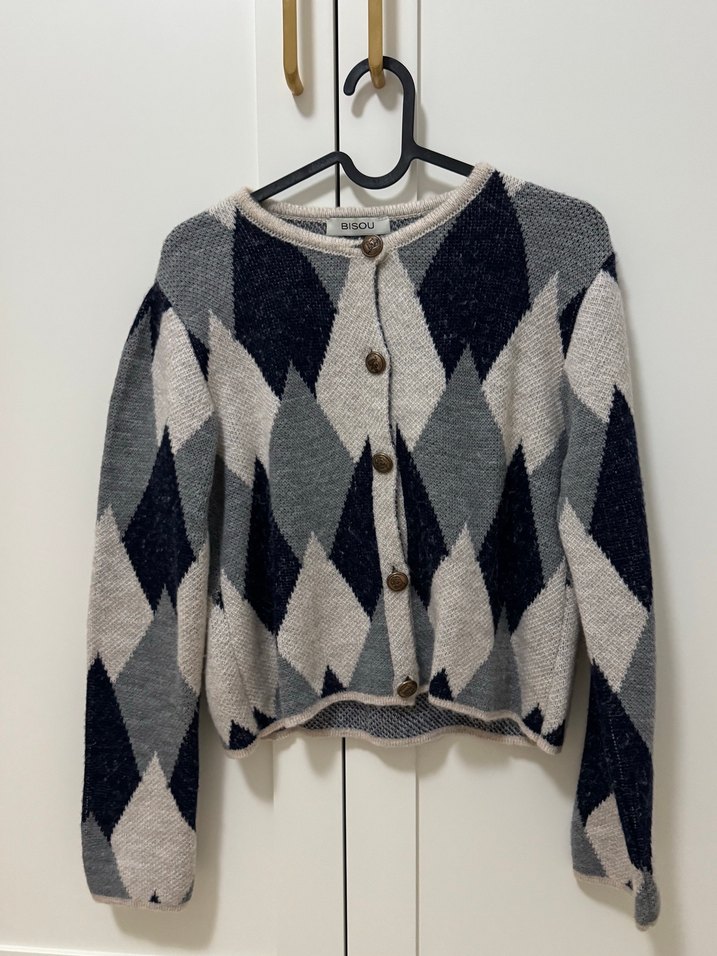 Bu rahat triko kadın hırka, bol kesim, uzun kollu ve yuvarlak yaka detaylarına sahiptir. Midi boyu ve geometrik deseniyle günlük kullanıma uygundur.