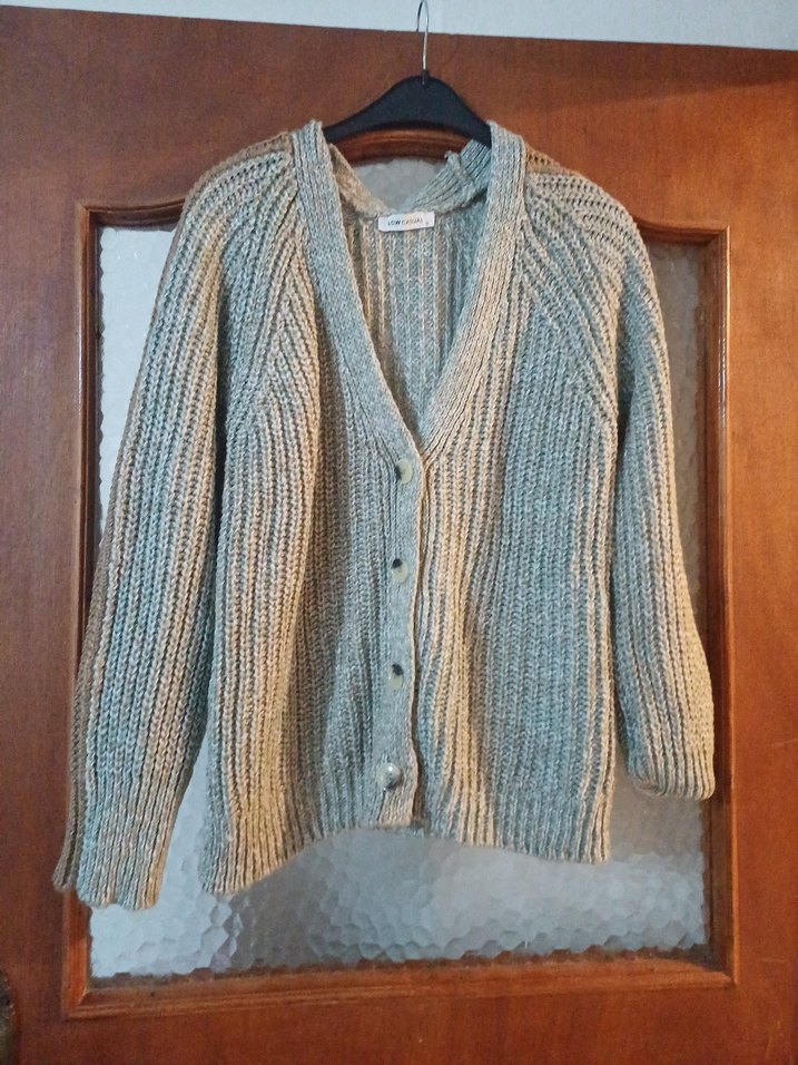 Gri renkte, düğmeli, uzun kollu, bol kesim triko kadın hırka. Midi boyda, yuvarlak yaka ve rahat kullanıma uygun.