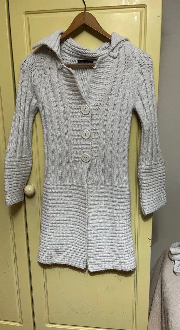 Gri Triko Kadın Hırka, Orta Boy, Düğmeli