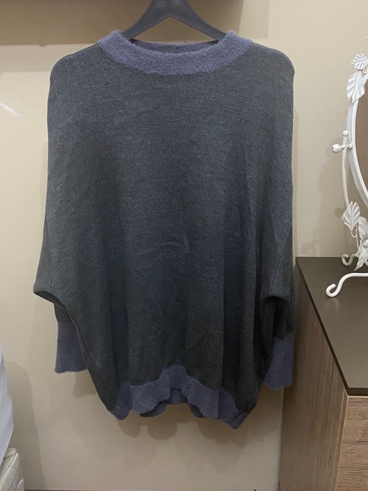 Hiç kullanılmadı. Kaliteli ve yumuşak bir dokusu vardır. Zara değildir. Boynu ve kolları ışıktan mor çıktı ama gri renktir.