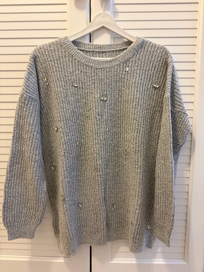 Gri Triko Kadın Kazak Uzun Kollu