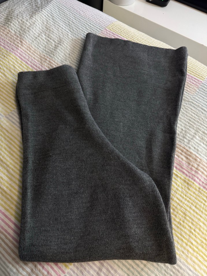 Gri renkli, triko dokulu, vücuda oturan kumaş pantolon, midi boyda ve gündelik rahat normcore tarzda tasarlanmıştır. Ben 1.70im bu şekilde duruyor, modeli kısa. defosuz hiç giyilmedi. Standart beden. S/M/L