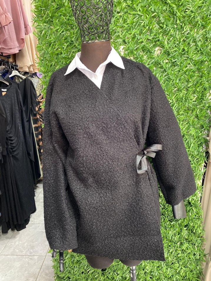 Gri renkli, triko dokulu midi uzunlukta, uzun kollu ve yakalı kadın kimono. Rahat kesimiyle günlük kullanıma uygundur.