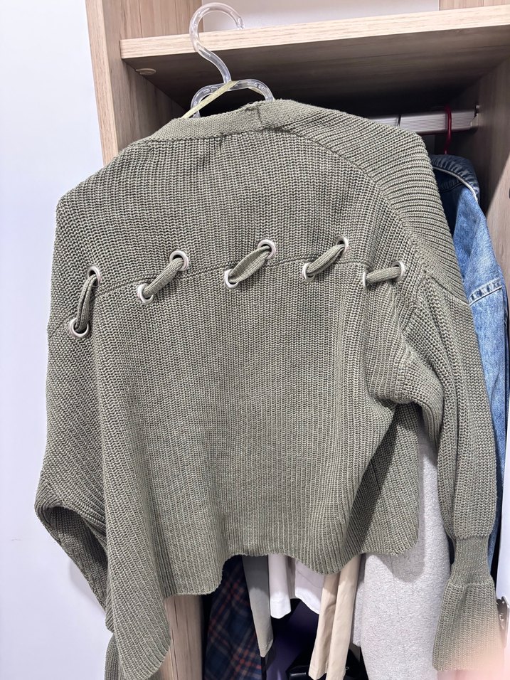 Gri renkte, triko örme, salaş kesim, strappy kollu ve bisiklet yaka kadın kazak. Midi boy ve desensiz, rahat ve şık bir günlük model.