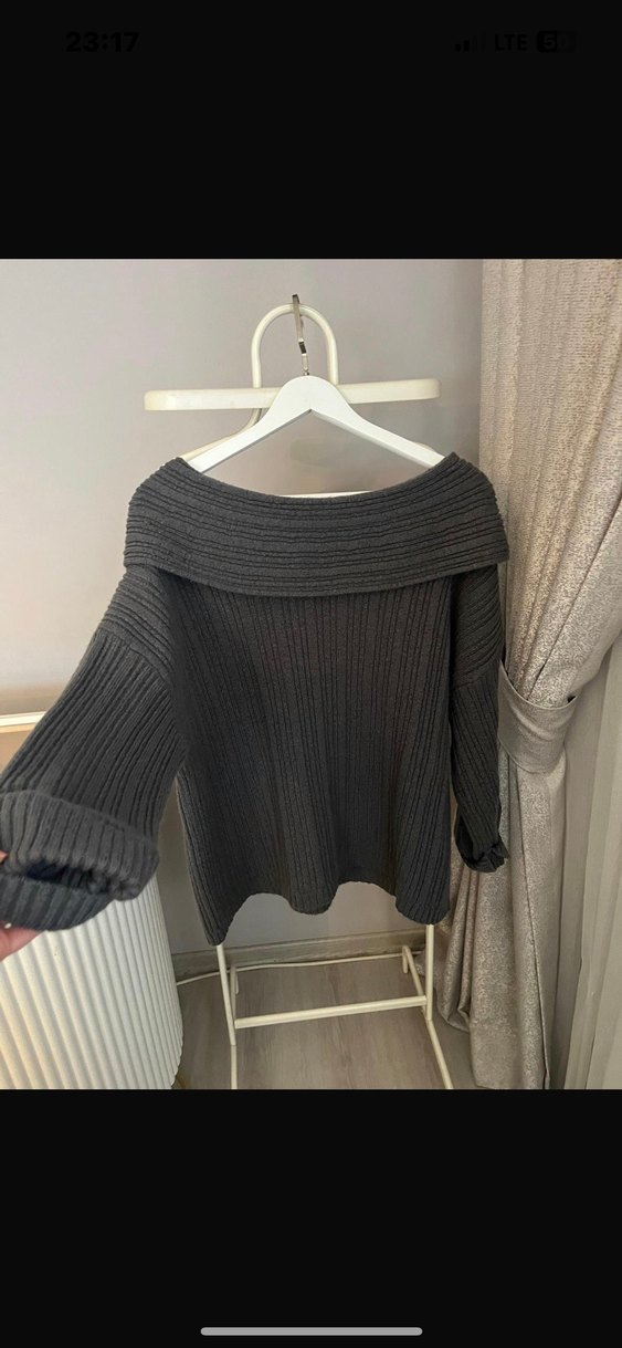 Gri Triko Kayık Yaka Salaş Kadın Kazak