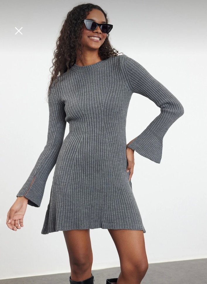 Gri Triko Midi Elbise