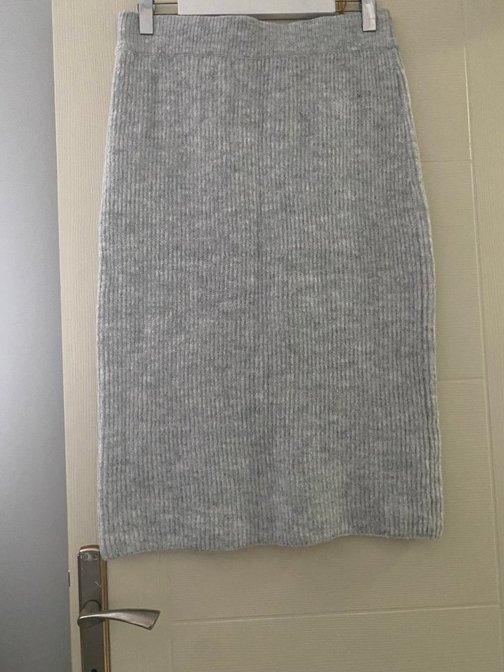 Gri renkte, triko dokulu, düz ve normal boy midi etek. Rahat ve günlük kullanıma uygun, vücuda oturan kesime sahiptir. Bir kere giyildi yenidir sıcak tuttuğu için giyemedim