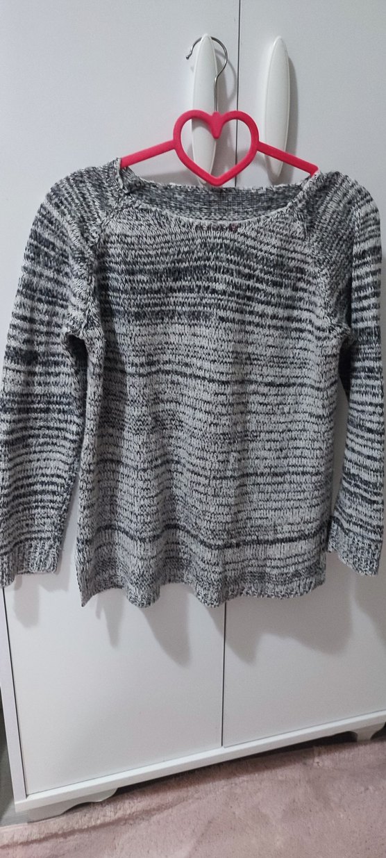 Gri renkli triko kumaştan, uzun kollu, yuvarlak yaka ve bol kesim kadın kazak. Günlük kullanıma uygun, midi boyda rahat bir model. hafif tüylenmesi var ama tüy temizleme cihazı ile temizleyip yollarım bedeni olmadığı için sayılı kullanıldı small için uygundur