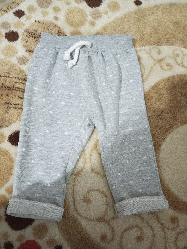 Gri renk, triko dokulu, bol kesim ve yumuşak kumaşlı. Rahatlık için bağcıklı bel detayına sahip.