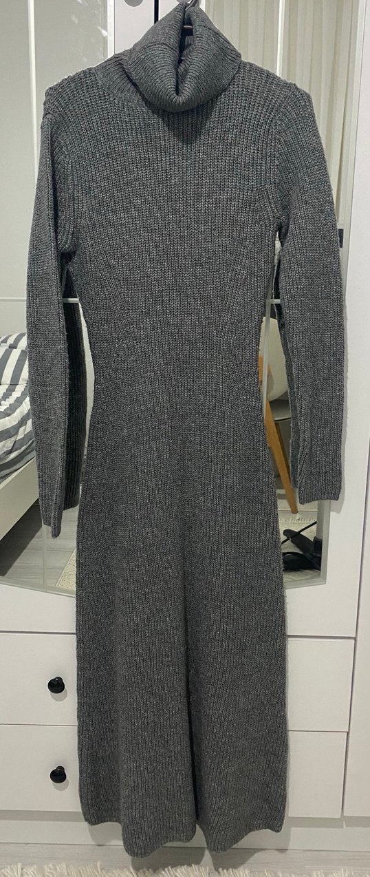 Gri triko, uzun elbise. Hiç kullanılmadı Boy:1,25 Esnek