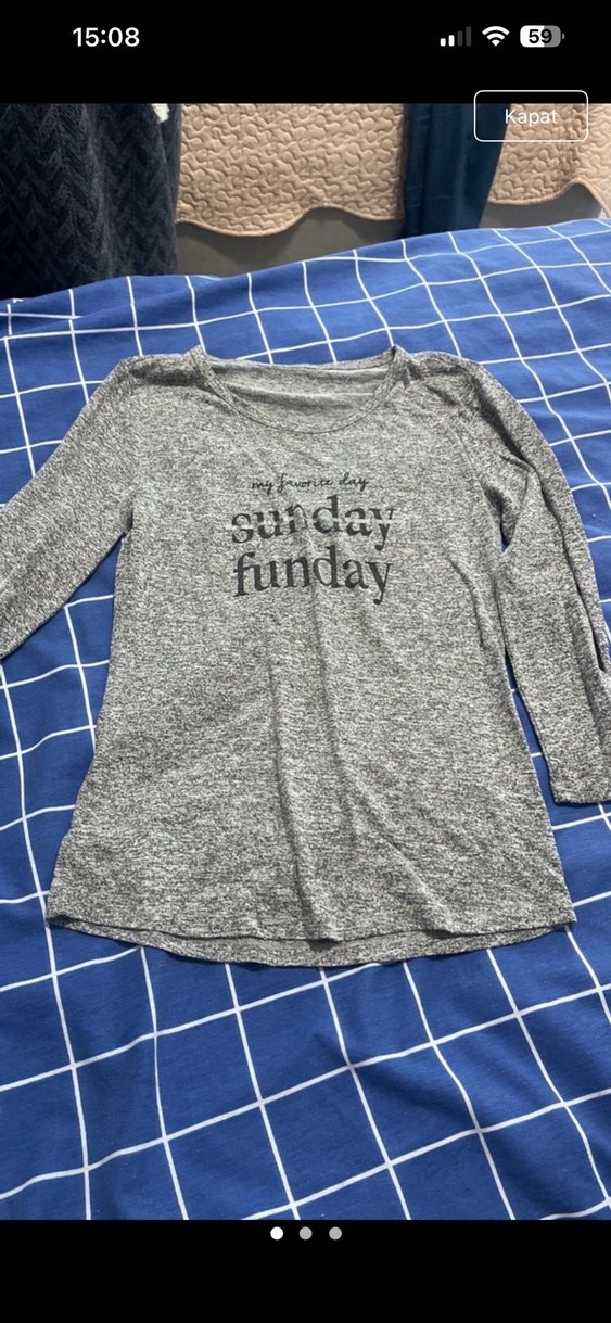 Gri triko uzun kollu ve yuvarlak yaka tasarıma sahiptir. 'sunday funday' baskılı, pamuklu ve rahat kesimlidir. Sokak stili için uygundur.