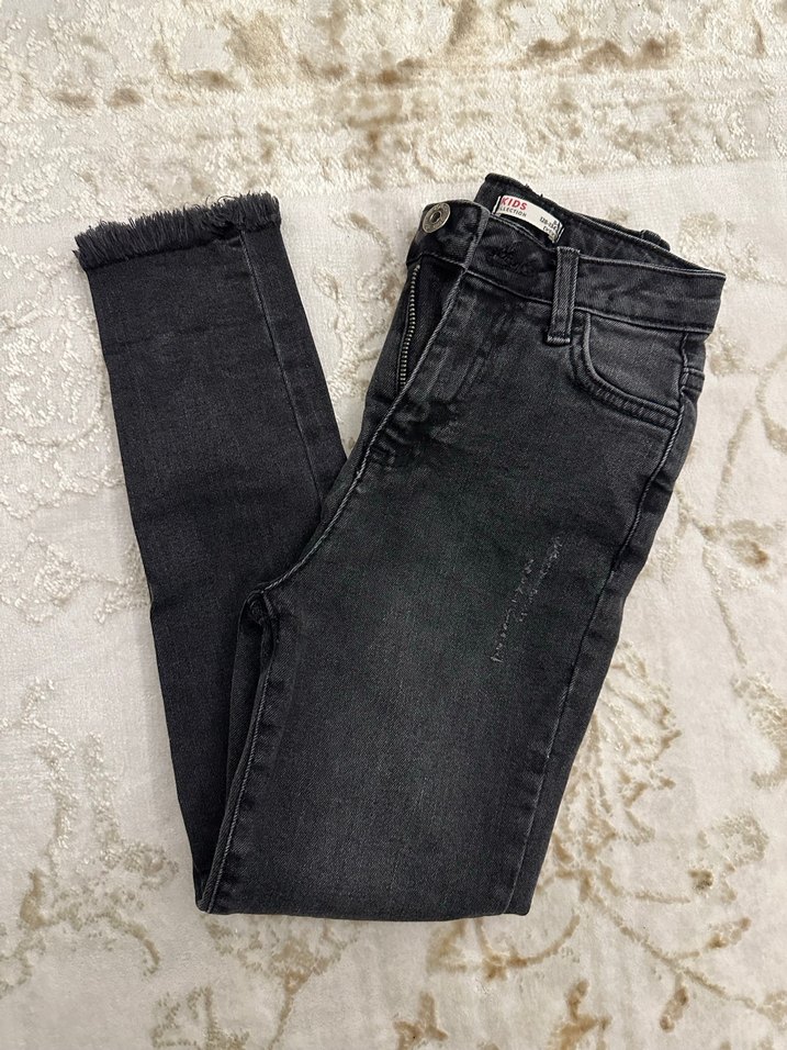 Gri denim kumaştan, tüylü detaylı, midi boy ve regular fit kesime sahip pantolon. Günlük sokak stili için uygundur. Kız çoçuğu pantolon 8-9 yaş yeni gibi