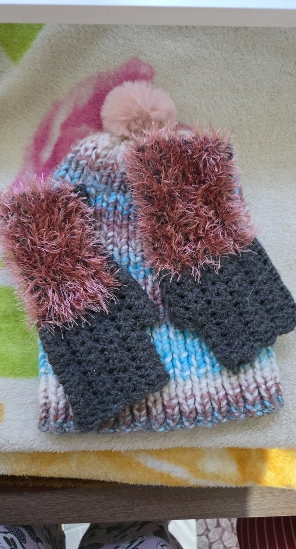 Gri örgü, parmakları açık kadın eldiveni, bilekte tüylü detayla şık ve rahat bir görünüm sunar.