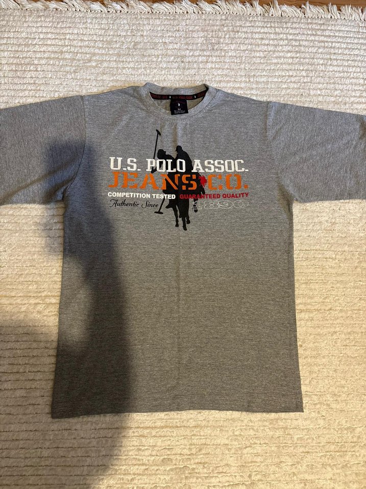 Gri renk, kısa kollu, yuvarlak yaka ve rahat kesimli U.S. Polo Assn. baskılı tişört. Yumuşak dokulu kumaştan, spor ve şık görünüm sunar.