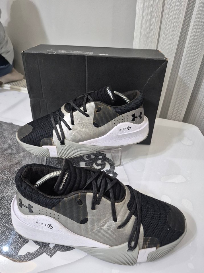 Bu gri Under Armour erkek koşu ve antrenman ayakkabısı, kauçuk taban ve cırt cırtlı detay ile spor ve sokak stili arasında şık bir denge sunar.