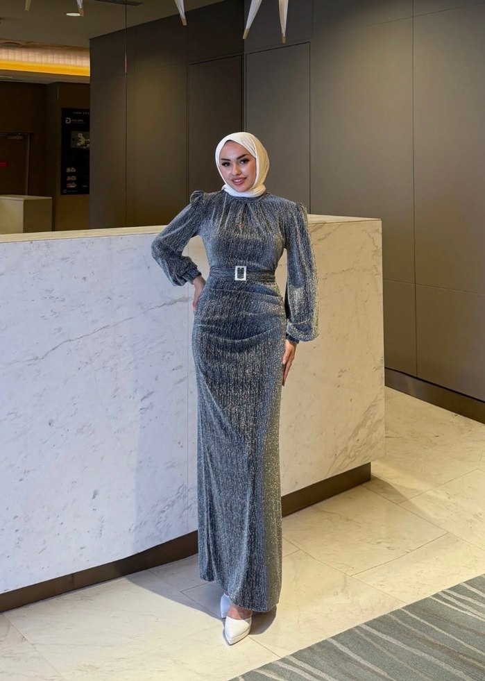 Gri Uzun Abiye Elbise