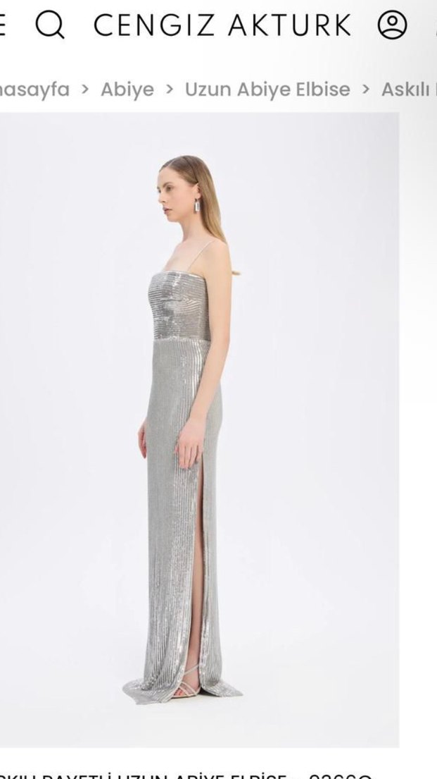 Gri Uzun Askılı Abiye Elbise marka cengiz aktürk bikere giyildi