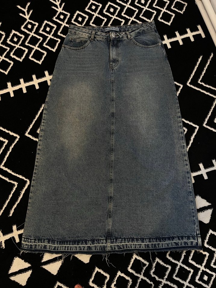 Gri Uzun Denim Etek