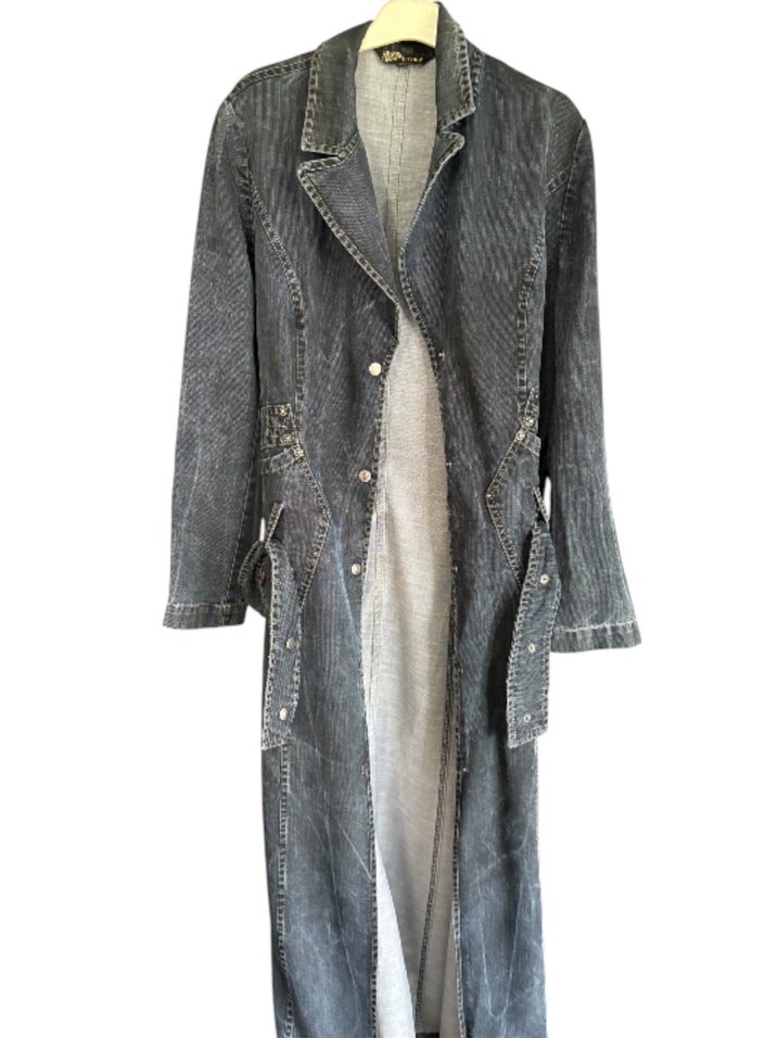 Gri Uzun Denim trençkot veya pardesü