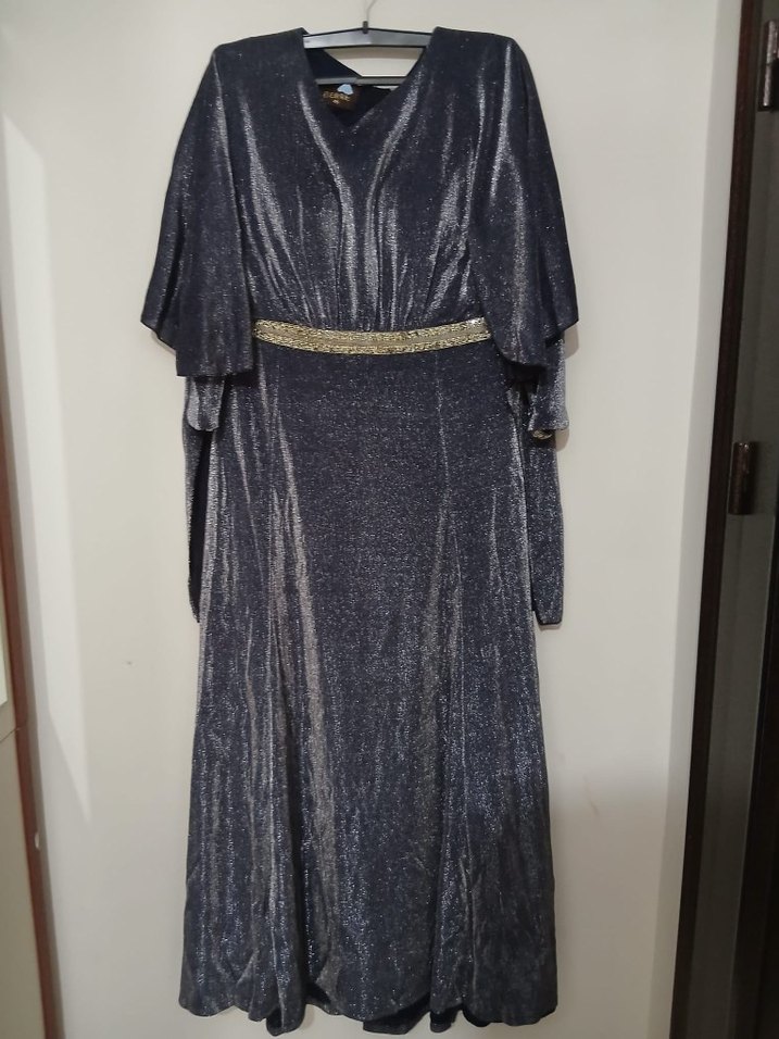 bol kesim arkadan pelerinli kol ağızında ve belinde taş detayları var tesettür için uygundur